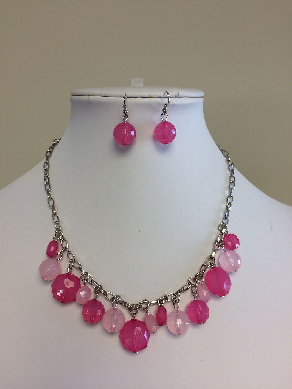 Pink Bead and Chain Necklace Set